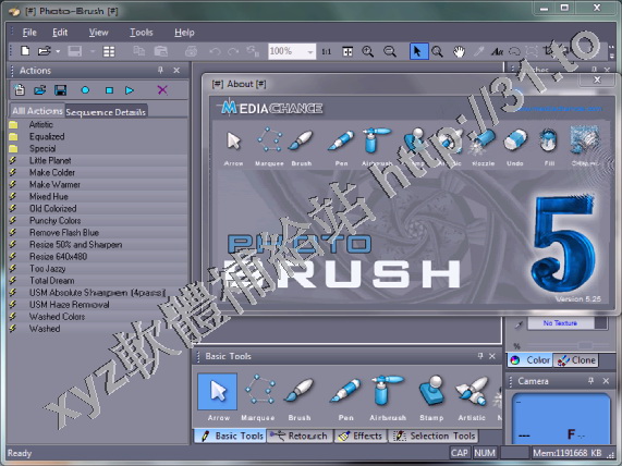 Photo-Brush 具有自然與藝術噴繪工具,圖像潤飾與增效工具。集中了多種圖像與特