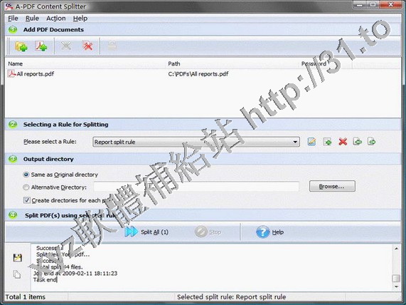 • A-PDF Content Splitter Service v1.7.0 英文正式版(PDF內容分配服務軟體)